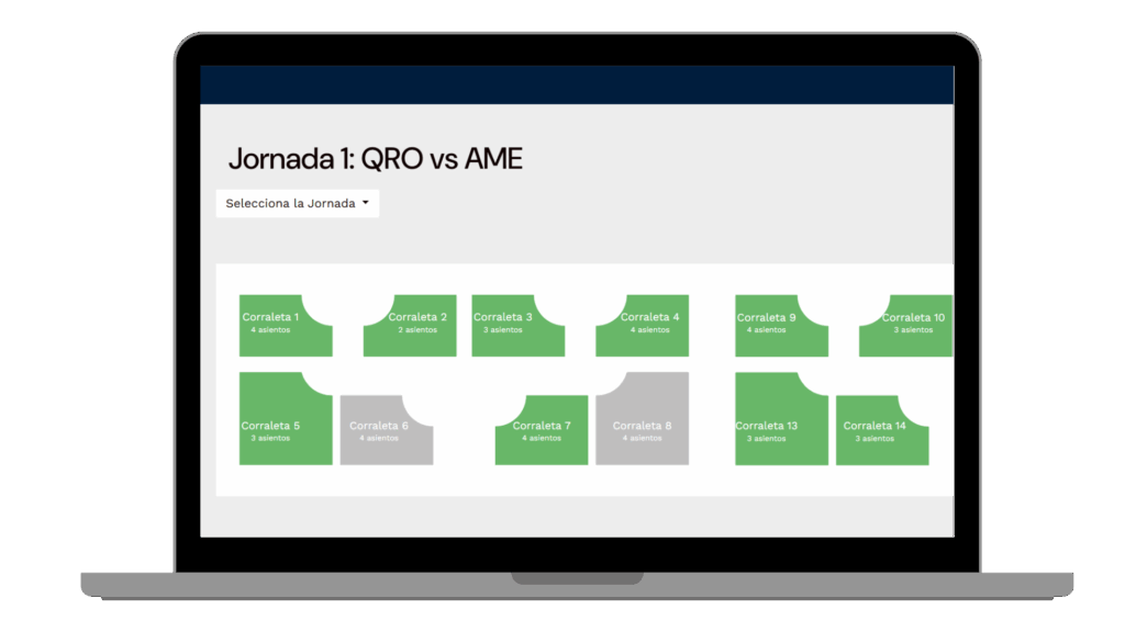 Además, se pueden apartar asientos directamente desde el sistema y llevar una bitácora con los datos de los asientos, facilitando una organización eficiente y segura durante los partidos.